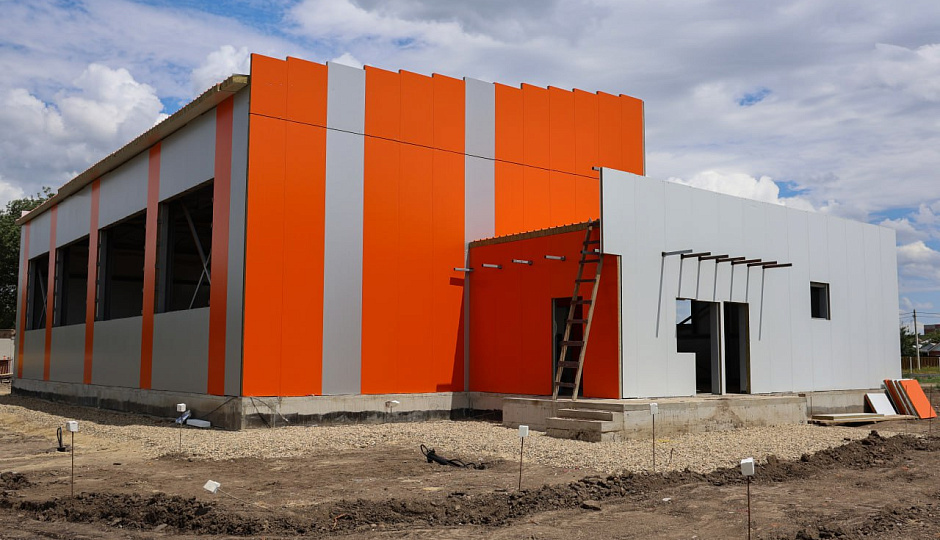 На данный момент рабочие бригады закончили монтаж сэндвич-панелей и кровли. Уже проложены все инженерные сети.