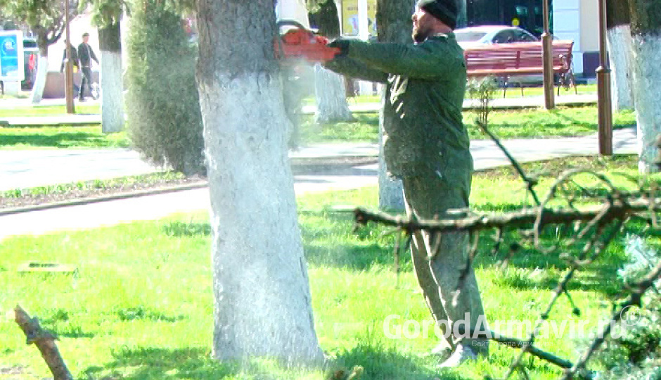Армавир, 21 марта. В центральной части города продолжается обновление зеленых зон. Рабочие приступили к спилу старых деревьев в парке 30-летия Победы. В первую очередь, его очистили от непригодных растений.