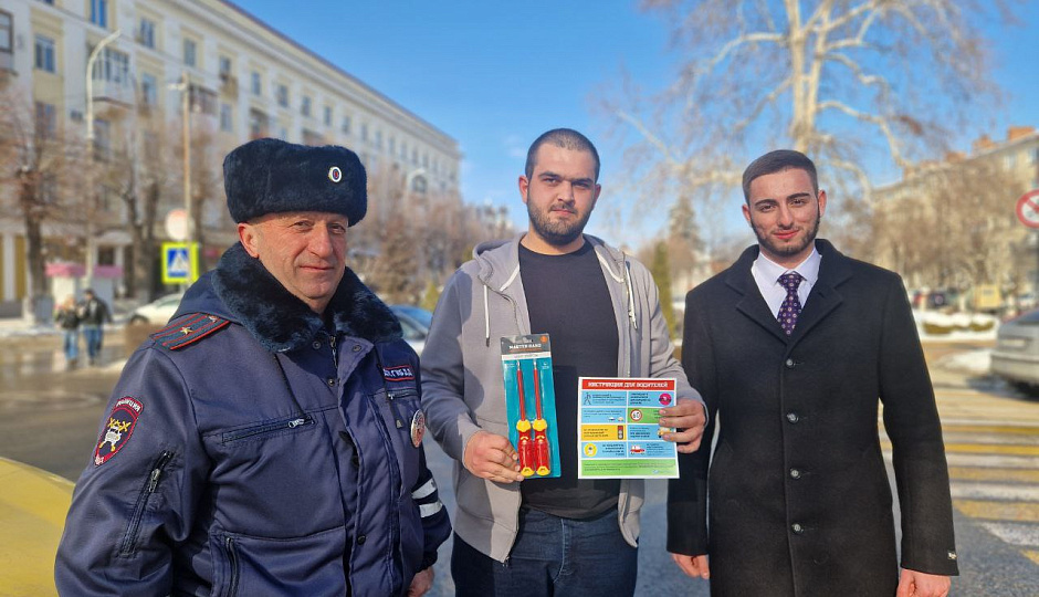 Армавир, 22 февраля. Сотрудники Госавтоинспекции вместе с ведущим специалистом Отдела по делам молодежи в преддверии Дня защитника Отечества провели профилактическую акцию "Вас ждут дома".