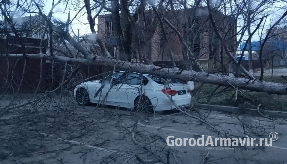 Деревья упали на несколько машин в Армавире во время ураганного ветра