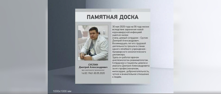 Коронавирусом заразился Суслин Дмитрий Александрович - врач Армавирского онкодиспансера. Медик не смог побороть болезнь и, несмотря на усилия коллег, скончался.