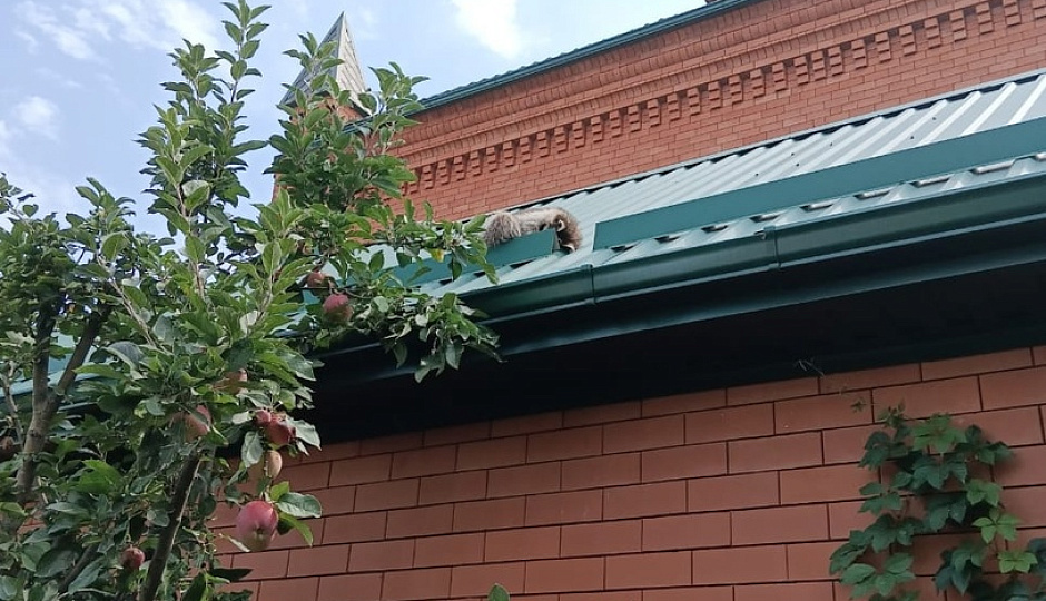 Армавир, 2 сентября. В Армавире специалистам «Службы спасения» поступил необычный вызов. Помощь спасателей понадобилась не человеку, а животному. На крышу частного дома забрался енот. Самостоятельно слезать животное не захотело.