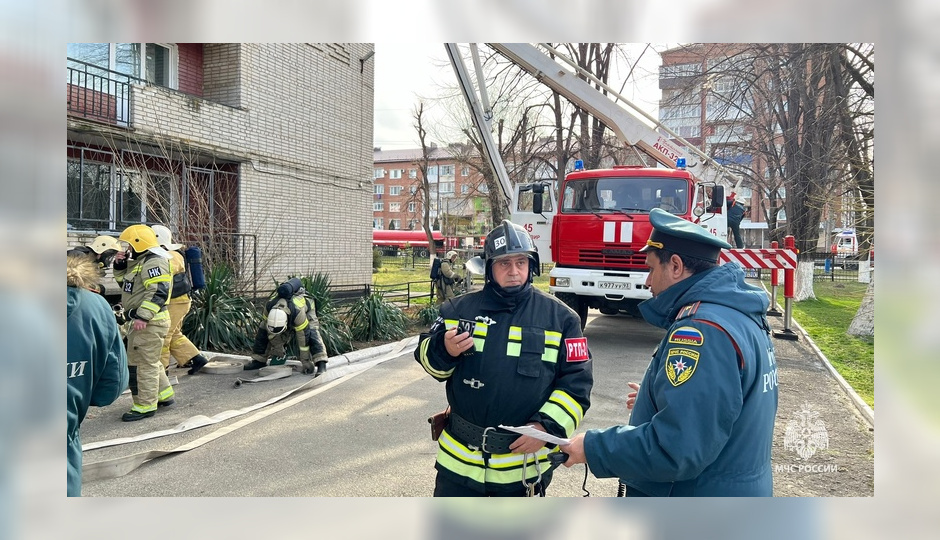 Пожар на 6 этаже: в Армавире в учениях МЧС приняли участие более 40 человек и 12 единиц техники