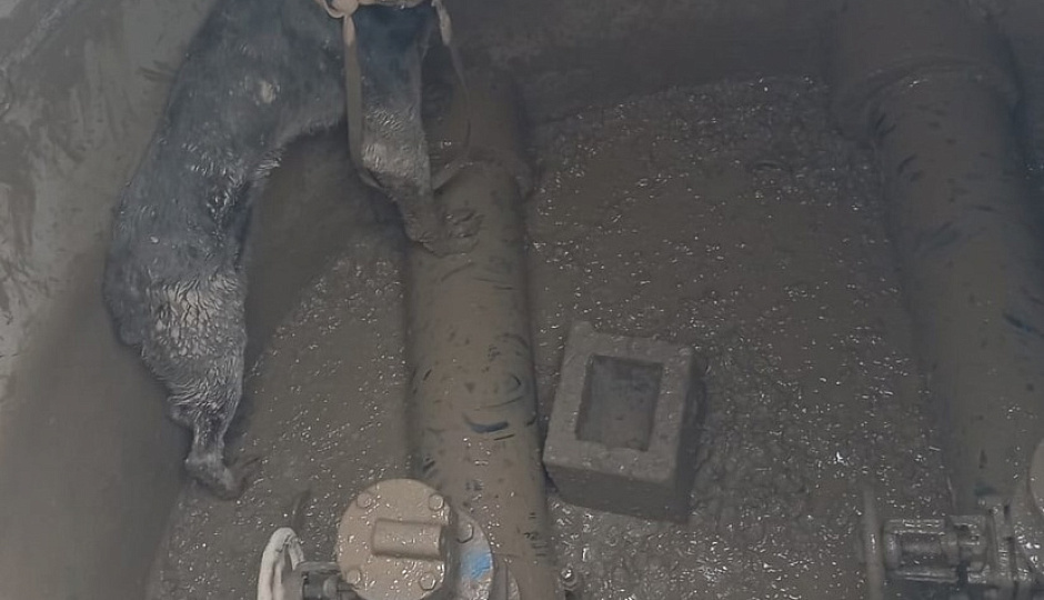 Очевидцы вызвали на место происшествия спасателей. С помощью специальных приспособлений четвероногого вызволили из западни.