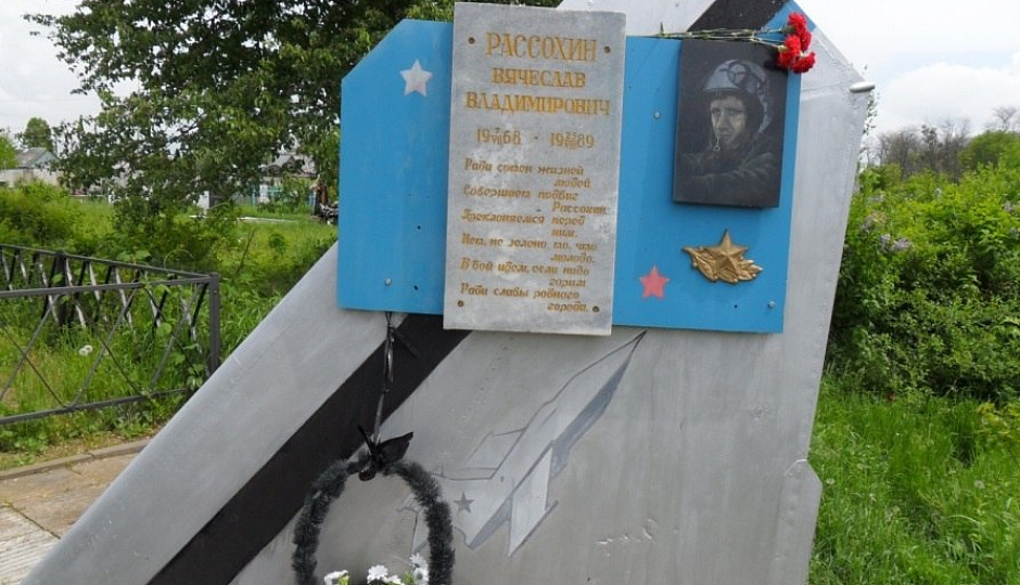 На месте падения самолета Рассохина в 1989 г. был установлен памятник из части крыла, памятной доски и фотографии курсанта.
