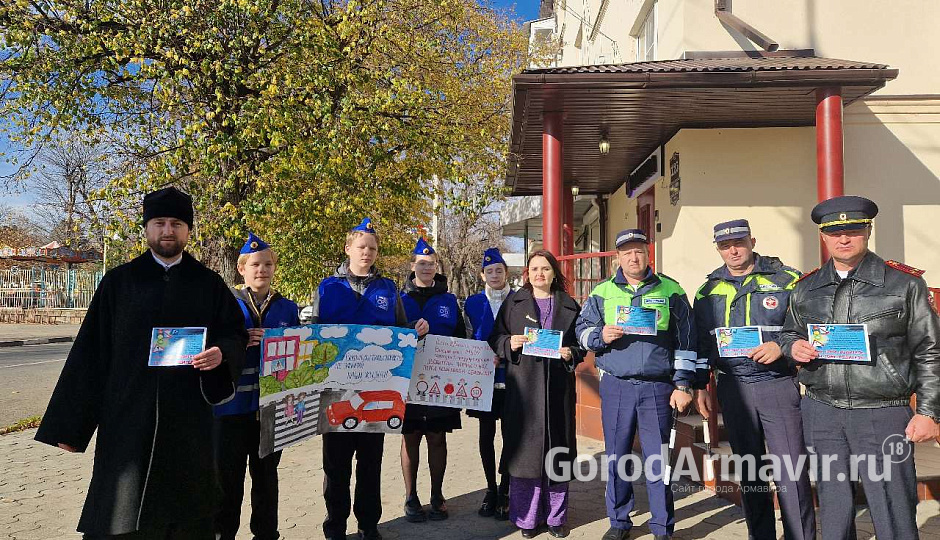 Армавир, 18 ноября. В Армавире с начала года произошло 23 ДТП с участием несовершеннолетних. В этих авариях 3 подростка погибли, а еще 23 пострадали. Чтобы привлечь внимание к ситуации на транспортных артериях города в Армавире прошла акция «Водитель, будь внимателен! Они хотели перейти .... а не уйти». Юные инспекторы движения гимназии № 1, начальник Госавтоинспекции Кирилл Макаренко, представители Общественного совета Отдела МВД России по городу Армавиру Благочинный Армавирского церковного округа Андрей Солоп и журналист Марина Аржакова приняли активное участие в проекте.
