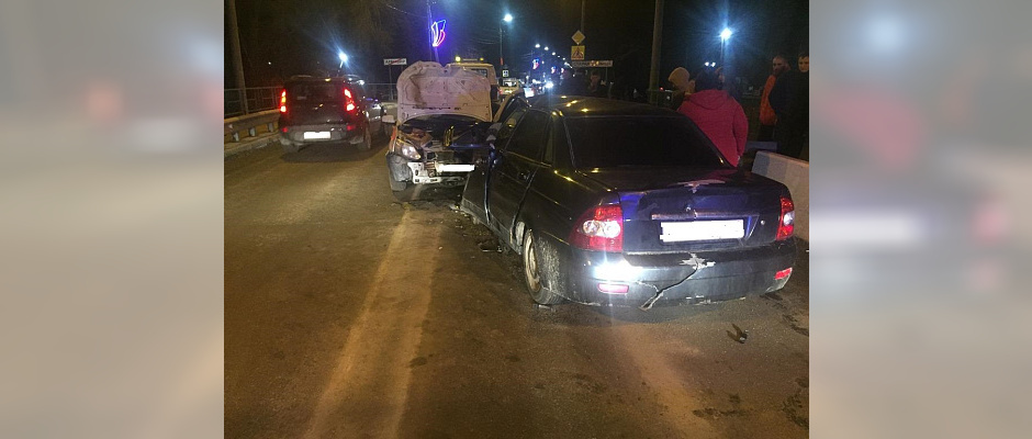 После столкновения автомобилей движение на мосту было заблокировано до тех пор, пока эвакуаторы не увезли искорёженные машины.