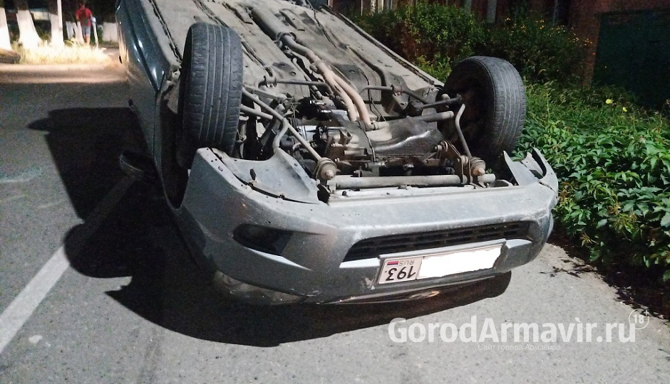 В Армавире во время ночной аварии перевернулась «Лада Гранта»