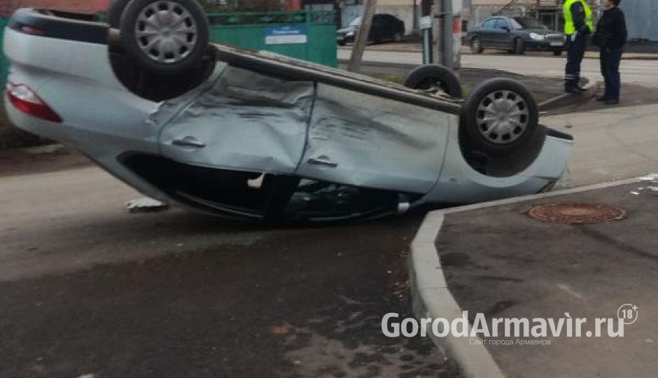 В результате ДТП в Армавире Nissan ALMERA перевернулся на крышу