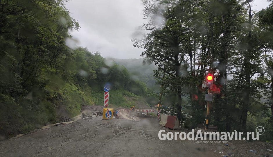 Также размыло часть дороги на Шаумянском перевале. Там идут строительные работы. Организовано реверсивное движение по одной из полос.