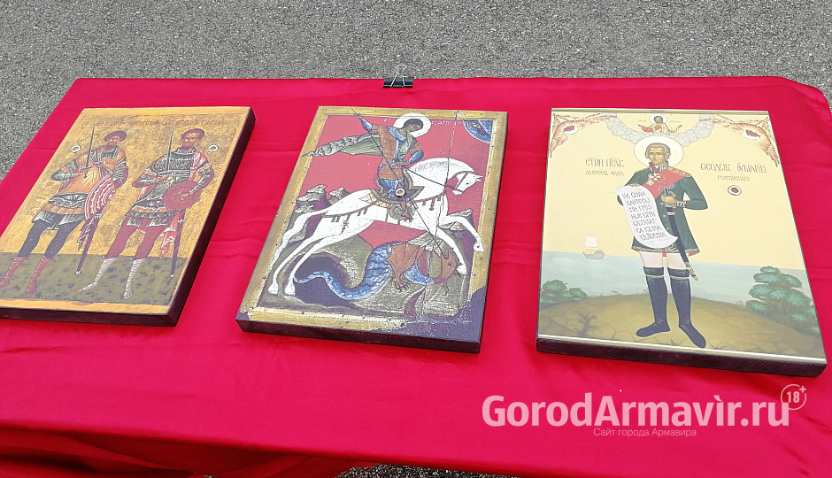 – Мы передали иконы с частицами мощей Георгия Победоносца из святой земли, частицами мощей Федора Ушакова из Санаксарский монастыря, святыни Феодора Стратилата и Феодора Тирона привезли наши меценаты из Европы. Мы впервые в Армавире и знаем, какая это героическая часть – рассказала корреспонденту Gorodarmavir.ru президент благотворительного фонда святого мученика Вонифатия Наталья Мезенцева.
